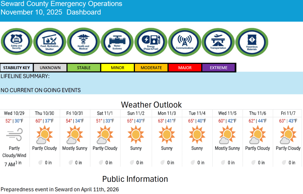 Seward County is committed to alerting you when emergencies occur, and to providing real time information to help keep you informed so you can stay safe.